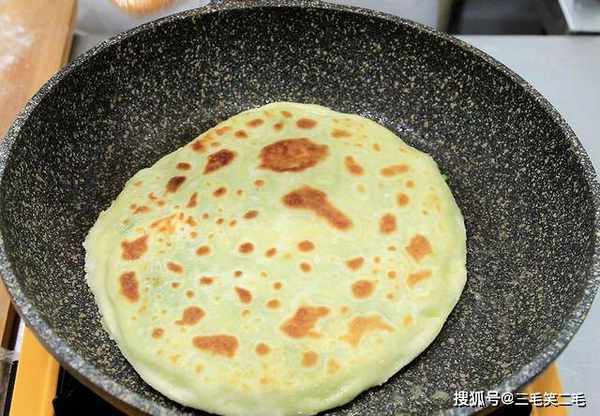 8.做好一个饼就开火,放置得太久馅太湿会把饼皮弄破,锅内刷上一层植物油,油热以后放入面饼,一面煎黄以后翻过来煎另外一面,煎的时候在不沾油的一面也刷上一层植物油,这样面饼会更加好吃,煎制两面金黄即可出锅。