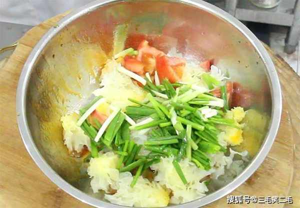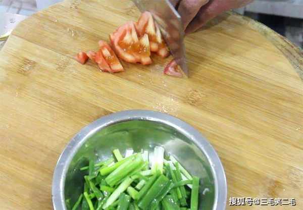 2.准备小葱一小把,清洗干净后切成小段。西红柿小半个,切成小块。