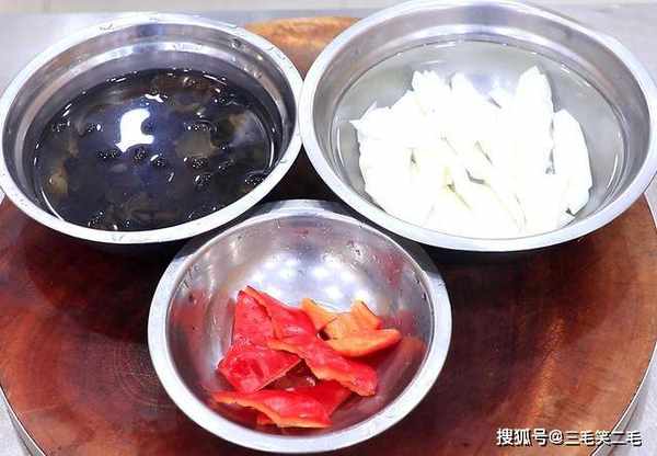 1.准备一小把木耳,提前放在清水中浸泡2个小时。山药一根,把外皮削干净后切成菱形片,放入清水中倒入一点白醋,浸泡一会以免氧化变黑。半个红椒,切成菱形片用来配色,木耳泡软以后捞出来,用手撕成小块备用。