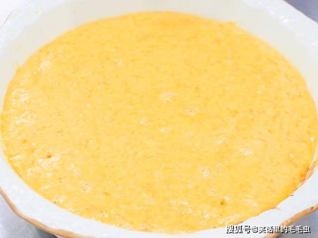 一小块南瓜去外皮后切成小片,起锅烧水将南瓜放进锅里,蒸制的时间大概在8分钟左右,取出南瓜,加入白糖10克按压成泥,再打入两个鸡蛋、3克酵母搅匀,然后分次添加普通面粉,把面粉和南瓜鸡蛋液搅成比较粘稠的糊状后,盖住发酵1个小时。