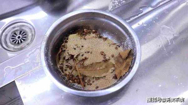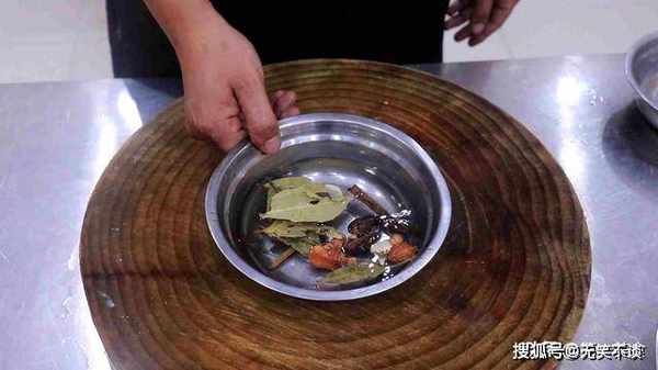 另外准备一些香料:几片香叶,一块良姜,一节桂皮,几片白芷,一个拍散的肉蔻,两粒砂仁,把这些香料用清水泡上,去除里面的的杂质和异味。