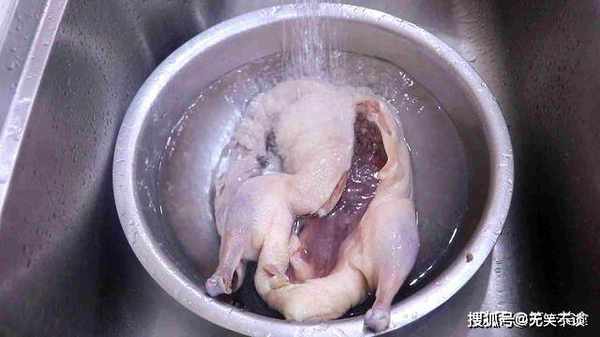 1.我们用的这只鸭子大概有3斤,先把它放在清水中洗一下,去除鸭脖子上面的淋巴,把胸腔里面的内脏也去除干净,然后把鸭子放在清水中浸泡一会,充分去除里面的血水。