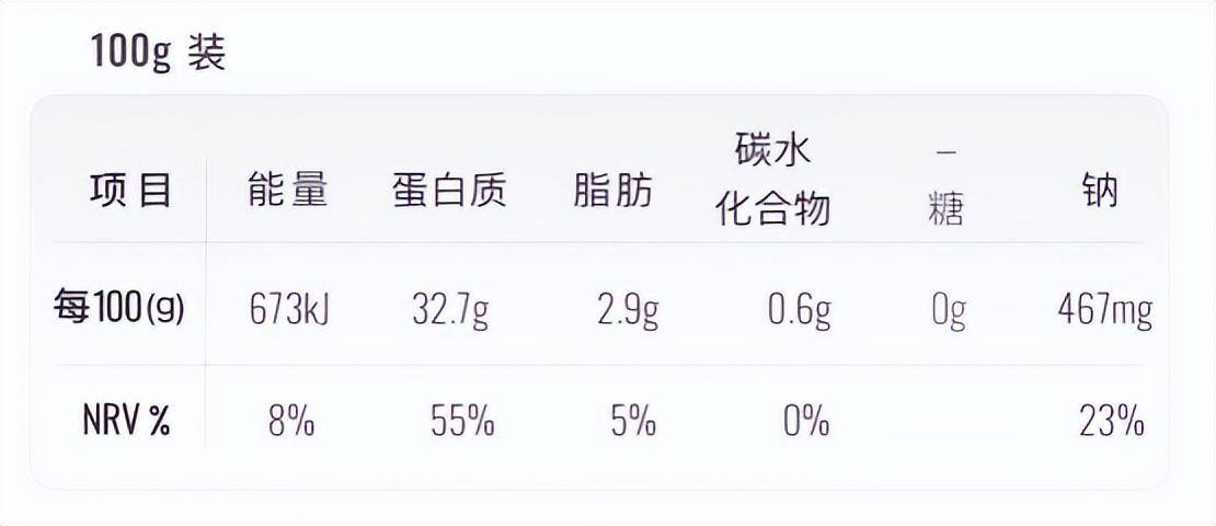 ▲我们刚刚说过,尽量选择“高蛋白、低脂肪、低碳水化合物、无糖”的健康零食。索赔受到严格监管。比如,这种高蛋白牛肉标榜是“高蛋白”吗?高蛋白要求食物的蛋白质含量≥12g/100g或≥6g/100ml。这100g牛肉干的蛋白质含量高达32.7g,符合要求,是真正的高蛋白食品。