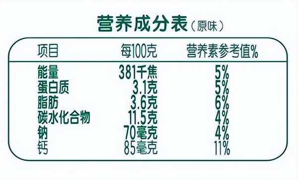 除了看配料表,看营养成分表也能判断我们买的是不是健康零食。营养成分表是食品中所含各种重要营养成分的含量,能清楚地显示食品的营养价值。