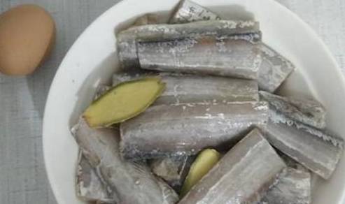 新鲜的带鱼,剁成大小合适的小块加入料酒,葱姜,盐,胡椒粉腌制半小时入味