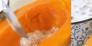 ⑥再把炖好的桃胶牛奶放到木瓜里面