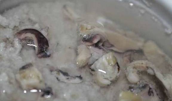 4、将墨鱼清洗干净后,切成小段放入盅内。