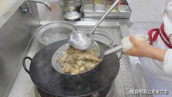 锅内烧水,鸭块凉水下锅,