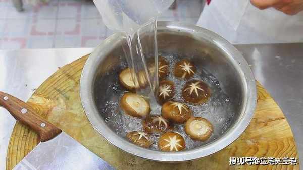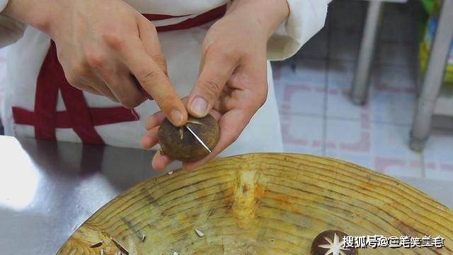 等待的时间,我们把香菇处理一下,剪掉香菇根部,用刀在顶部刻花,这样做香菇更容易入味,看上去也好看。