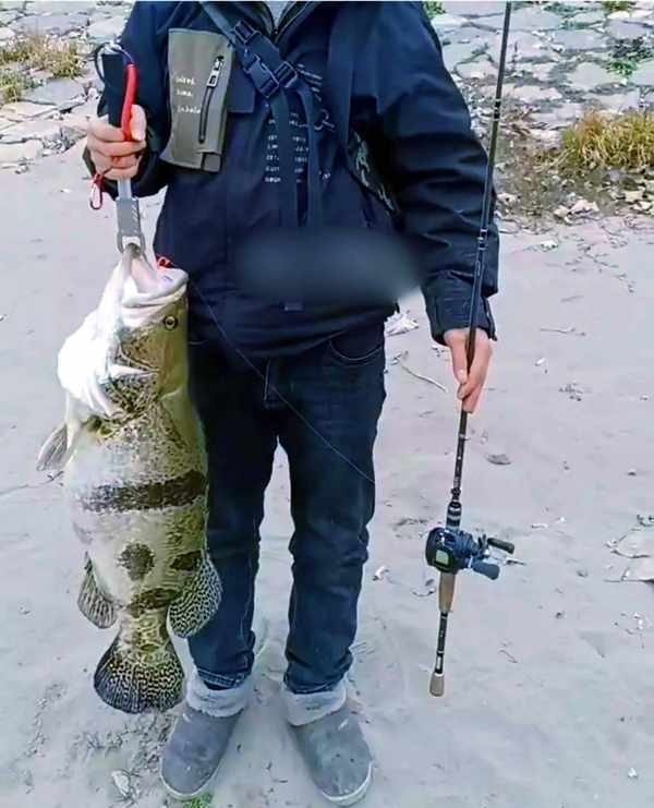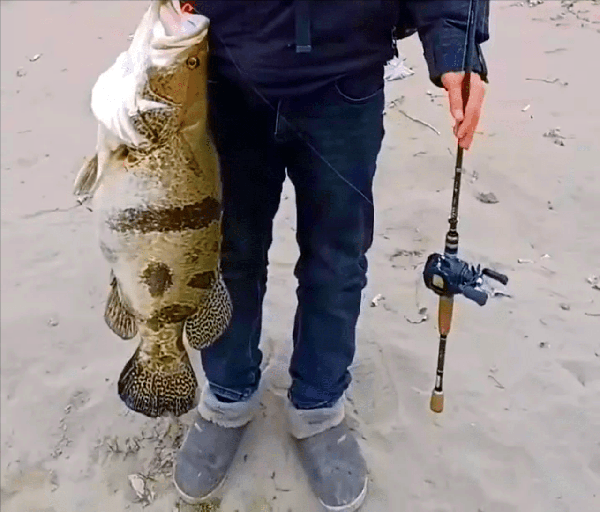 令男子自己都没有想到的是,他只是抛竿几次就钓到了一条大鱼。走了十多分钟,终于成功把鱼拉上了岸。