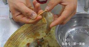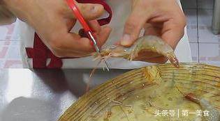 从虾的背部先划上一刀,挑出虾线。虾线在虾的背部,就是虾的消化道,虾线中含有略苦的物质,不但能掩盖虾的清香,吃起来还影响口感。