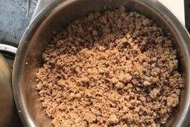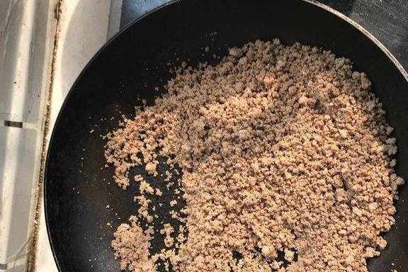 5.将搅拌好的肉放入平底锅,小火翻炒至干,香喷喷的肉松就出锅了。夾在馒头面包蛋糕中间都是极好的,小一点的孩子也可以放在稀饭里面。如果孩子还没有吃盐,直接不要放酱油之类的调味品即可。