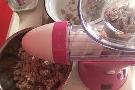 2.将肉放入保鲜袋,用擀面杖擀成薄片。然后用绞肉机绞碎