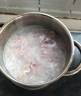 1.里脊肉切小块,放入锅中,国内加一点点盐和料酒以及生姜片,把浮沫撇去,然后煮起来,大火开锅,小火煮到软烂。我一共用了40分钟左右