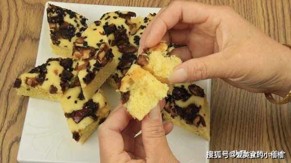 之后把枣糕取出来,切成均匀小块就可以食用了。这样蒸出来的枣糕非常暄软,里面也不发黏气孔也很均匀细腻,比面包还好吃。