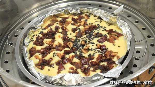 开火烧水,水烧开以后,把发酵好的面糊放入蒸锅里面,盖上锅盖蒸20分钟左右,面糊就熟了。之后先不要着急掀开锅盖,再焖3分钟等热气散开后,再打开锅盖,以免内外温差太大,造成枣糕塌陷。