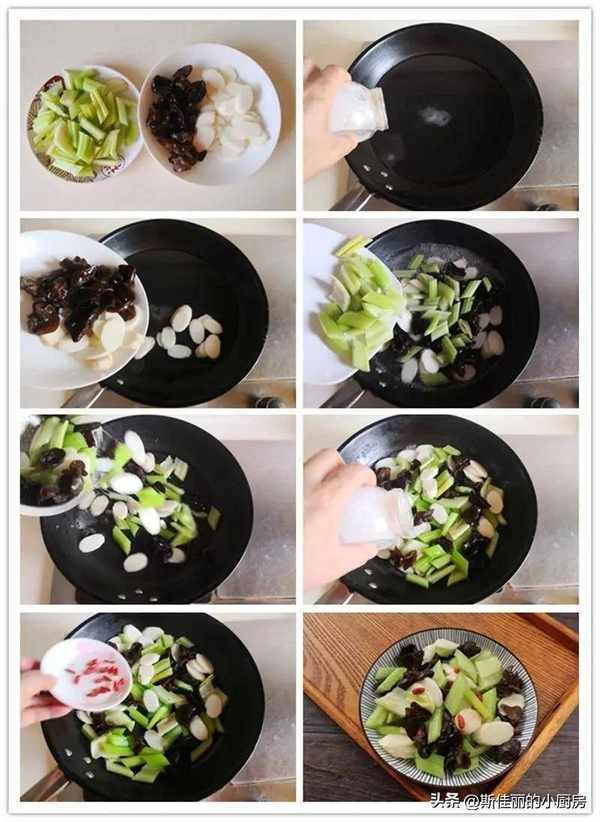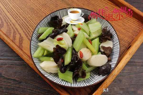 原料:西芹 铁棍山药 木耳 枸杞 油 盐