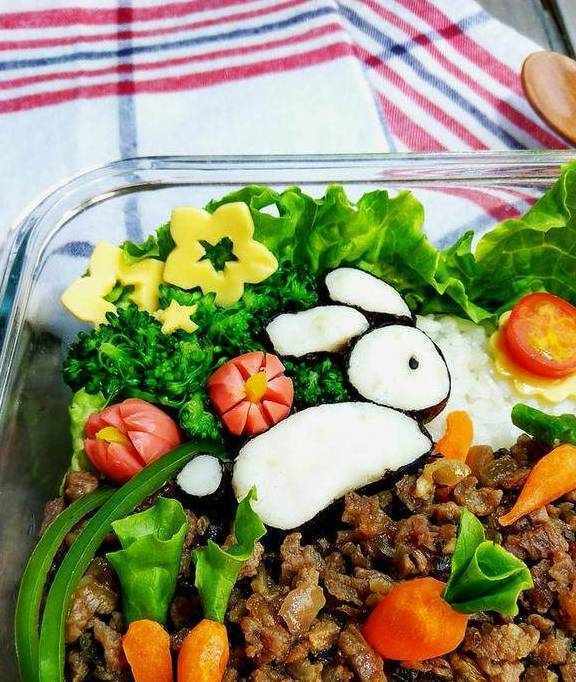 其实妈妈们做便当饭盒的时候,不止考虑到要美,还有荤素搭配,营养多样,颜色协调,口味合理,这些都需要动动脑筋。