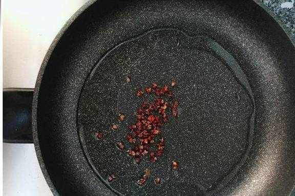 3、锅内倒入少许油,烧热至七八成后下花椒粒,炸出香味;