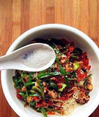 干辣椒切成小段用冷水浸泡几分钟,这个很辣的哦,哈哈我必备的东西。。。