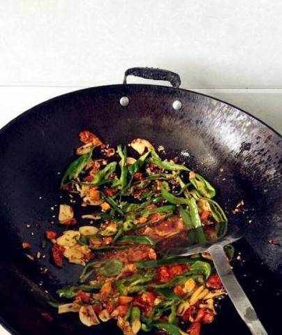 再放入干辣椒,和适量的辣椒酱一起翻炒均匀,炒出香味哦