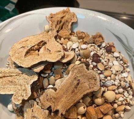 做法:先将材料准备好,炒熟,这一步很新的,可以除去材料的寒性,让有胃部有寒气的朋友也可以放心食用。