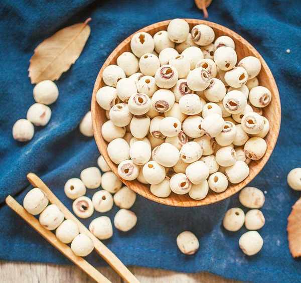 莲子,你知道吧?就是睡莲科植物莲的干燥时尚种子。药店里就有。