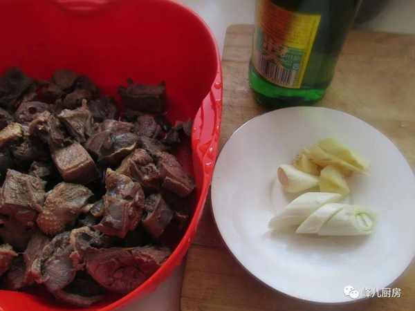 4,把鸭块洗净,葱姜切块。