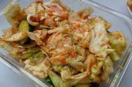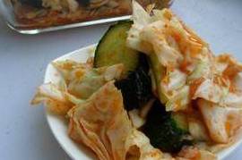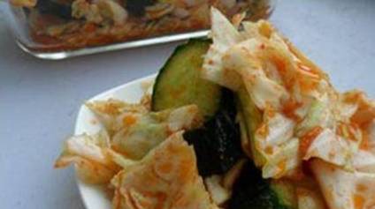 儿子特别喜欢吃韩式泡菜,特别是泡白菜、卷心菜之类的,也曾想自己在家里做,但是看看那些繁琐的调料和冗长的时间,我就一个头两个大。前几天看了一个电视节目,教授如何做出即刻就能入口的韩式泡卷心菜,调料简单不说,还不用发酵,即做即吃。我第二天就做了,当然了,人家没说这调料的比例,俺都是根据自己的感觉和喜好来添加的呢,不过呀,哇!口感那叫一个好啊!哈哈!