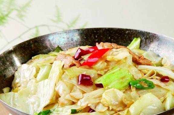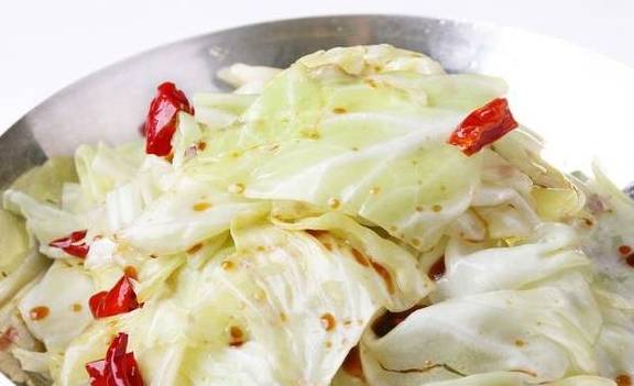 加入蒜片继续煸出香味,大火放入沥干水分的包菜、干辣椒继续翻炒,接着加入除香醋和鸡精的所有调料、另外再加少许的水炒软至熟,起锅前加鸡精,沿锅边烹入香醋拌匀出锅即可