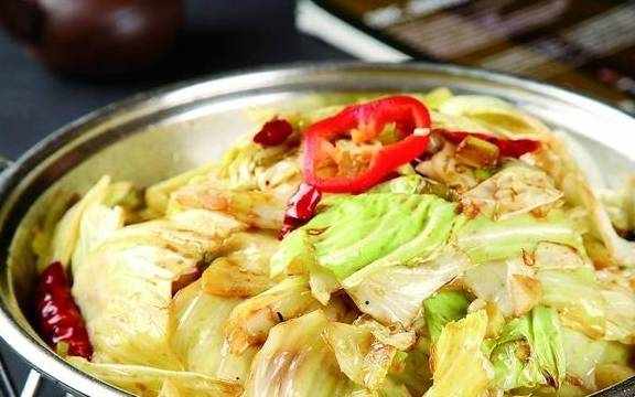 干锅手撕包菜材料:卷心菜300克,五花肉100克,蒜4瓣,干辣椒5个,白糖1小勺,酱油2勺,鸡精1/2小勺,料酒1小勺,食盐1/2小勺,香醋1/2小勺