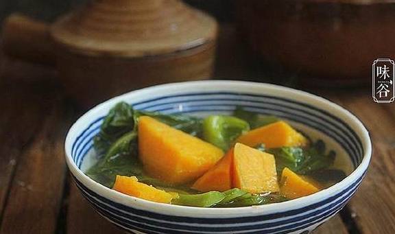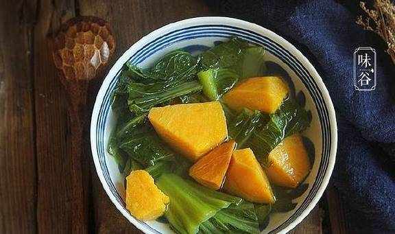 大芥菜略带苦味,食而甘之。其中含有丰富的维生素A、维生素C、维生素D和B族维生素。且大芥菜富含膳食纤维,具有通便的作用。番薯,又名地瓜、红薯等等,品种较多。同样也是低脂肪高纤维的食物,经常吃红薯可以减肥,还有利于防止便秘和排除身体毒素的作用。芥菜微苦,番薯甘甜,平常的材料也能煮出美味的汤来。