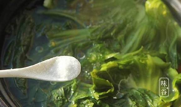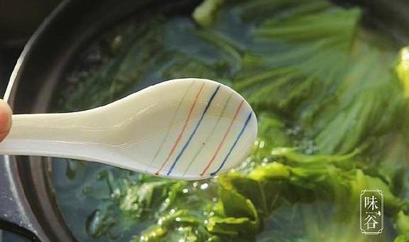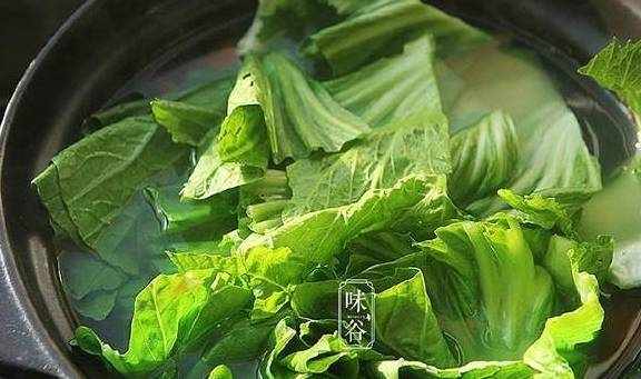 6、大约15分钟左右,芥菜煮至熟软,加入适量的盐调味即可。
