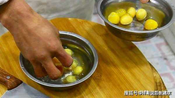小皮蛋一盆,除去外壳,用清水浸泡冲洗干净。