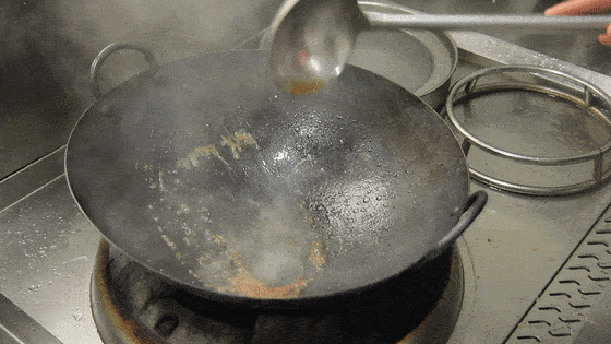 清锅后,加入少许清水,放入一小把冰糖加热。过程中冰糖融化且颜色会逐渐加深,当糖浆变成红棕色时,从锅边淋入一勺清水搅拌均匀。