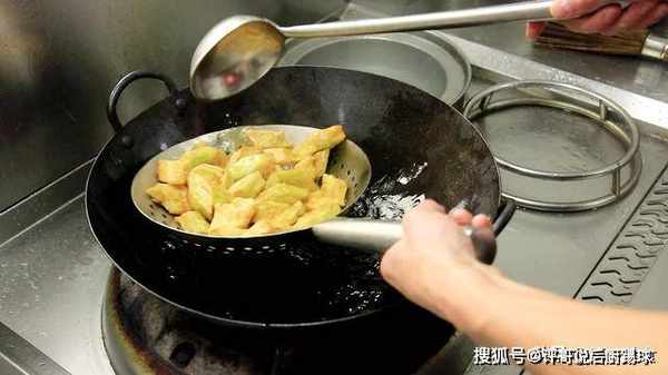锅内烧油,油温五成热时转小火把茄段依次放入锅中,用勺子不断推动茄子使其均匀受热,保持小火炸2分钟左右,待茄子定型表面呈微黄时捞出备用。等茄子捞出以后,加火把油温升高至6成热,再倒入刚捞出的茄子快速复炸30秒钟,等茄子表面呈金黄色时捞出控油,这样更能把茄子炸酥、炸脆。
