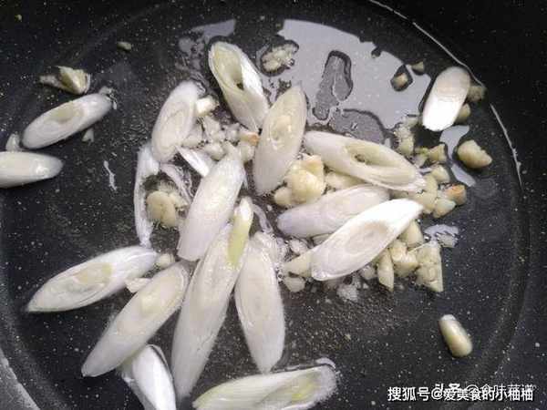 2、锅内烧油,等7成热,下入蒜末和葱,炒出香味。