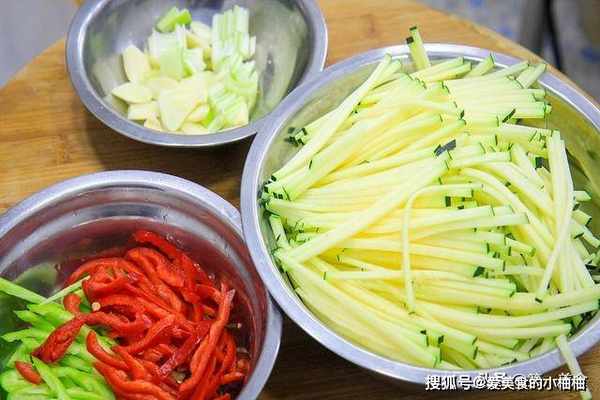 。把外皮削干净,先切成薄片再切成细丝,切好以后用清水泡上。