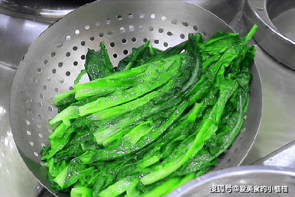 大约焯水30秒钟,油麦菜烫软、返青以后倒出来。