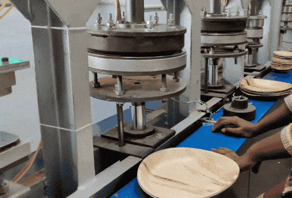 而相较于塑料餐盘,回收干枯树叶制成的餐盘要显得环保许多。