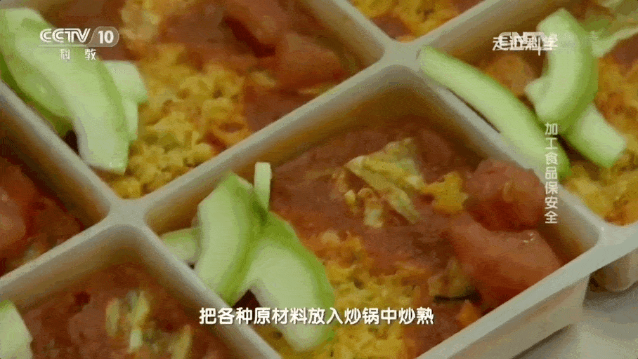 炒制好的食物迅速将温度降低到零下30摄氏度左右冻结起来。