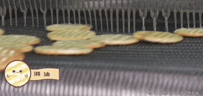给烤到香脆的米饼淋上油,