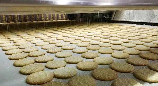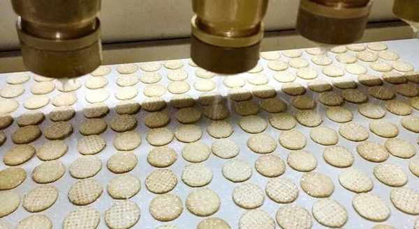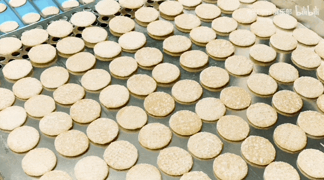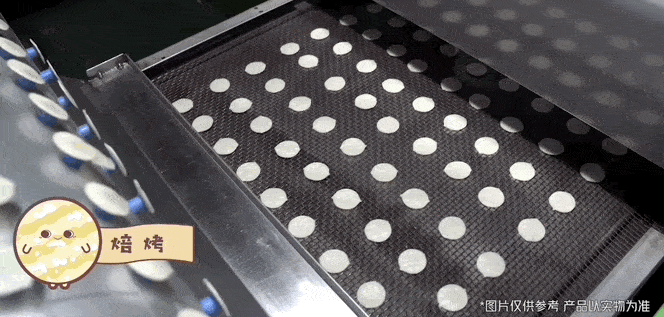 而切下来的圆片进行干燥后,送进大圆滚桶进行烘烤,