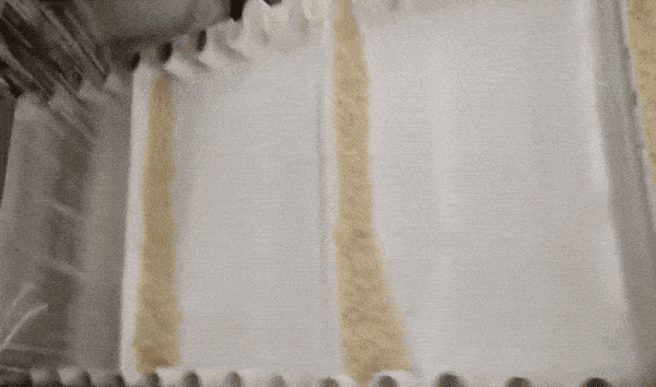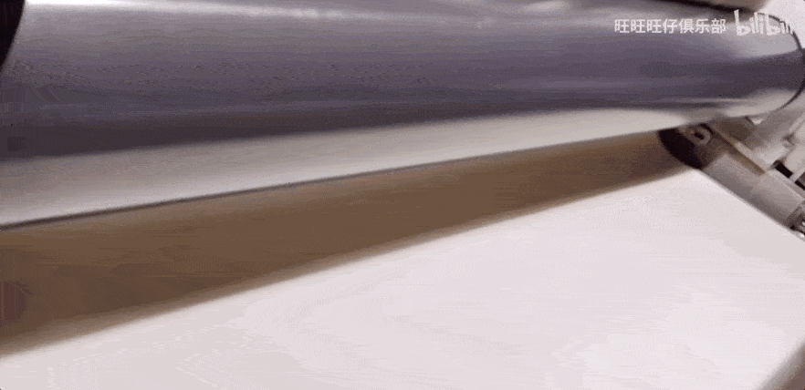 数十米长的面团条在机床上反复滚压,丝滑且治愈。