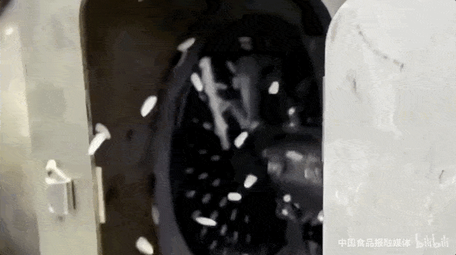 机器内部高速旋转螺旋杆挤压,让大米进行膨化,