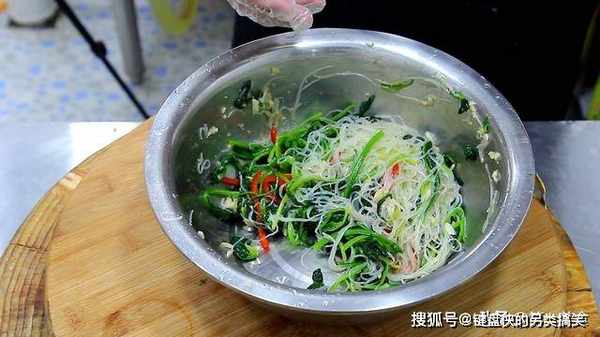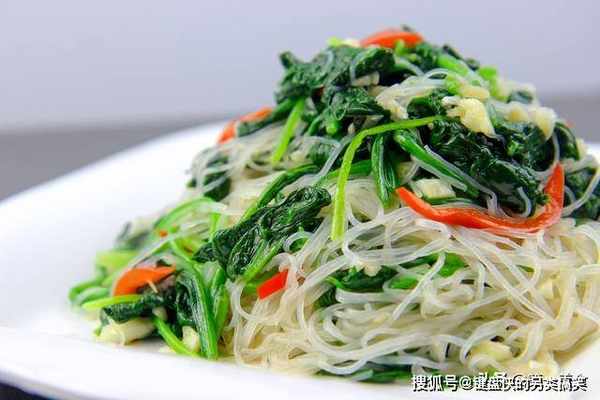 2.菠菜拌粉丝还可以根据自己的喜爱,自由搭配辅料,比如放入黄瓜丝和海带丝