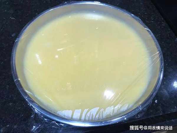 3、倒入不锈钢碟子里,封上耐高温保鲜膜,在膜上扎几个小孔,有人说保鲜膜不安全,其实换成盘子也可以。