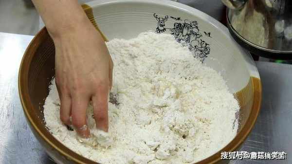 2.先把面粉搅成面絮,