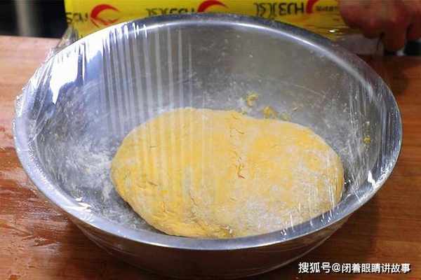 南瓜去皮、切成块,放锅中蒸15分钟。蒸熟后取出来晾凉,压成南瓜泥,然后加入适量的面粉,酵母3克、米酒10克,揉成光滑的面团发酵一个小时。