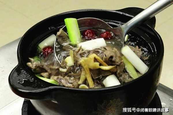 砂锅中倒入开水,放入葱段、姜片和泡好的辅料、猪心,稍微加一点食盐增加底味,先大火煮沸腾再转中火炖煮20分钟,让食材的营养充分融入到汤水里面。